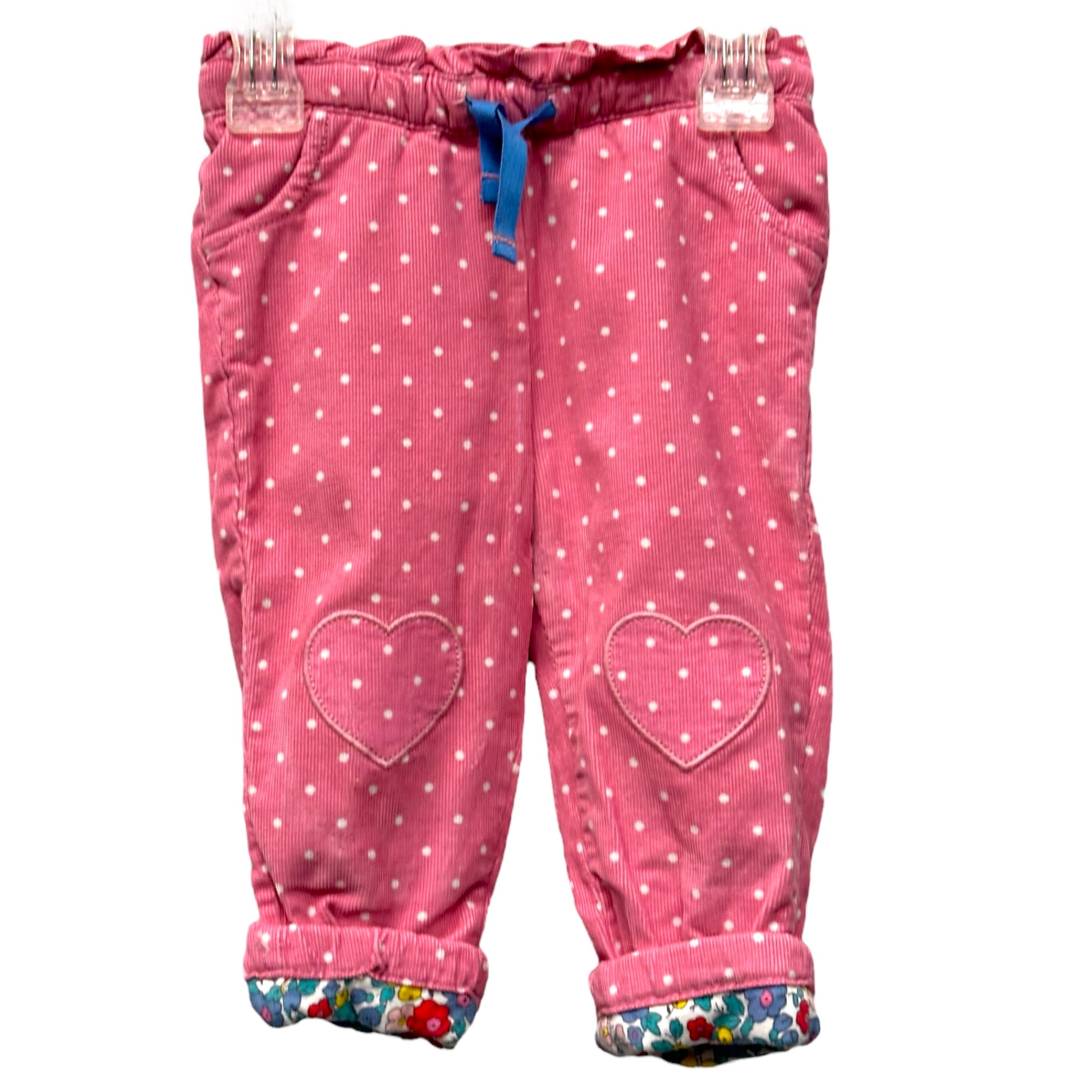 Pink corduroy lined with floral knit pull on pants with reinforced knees (Pre-owned)