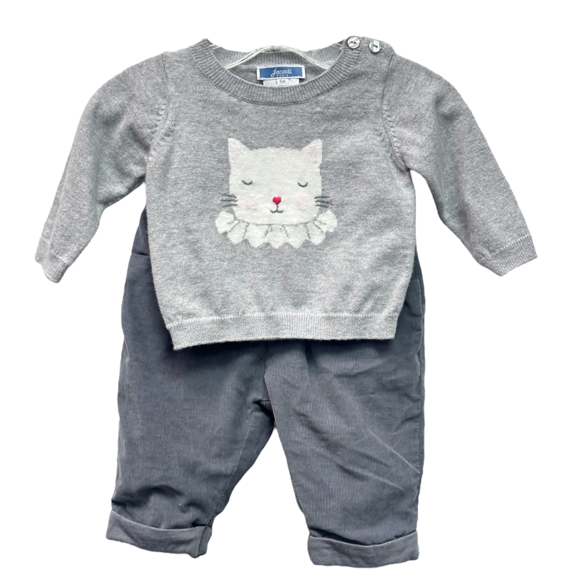 Kitty sweater and knit lined corduroy pull on pants, designed in France (Pre-owned)