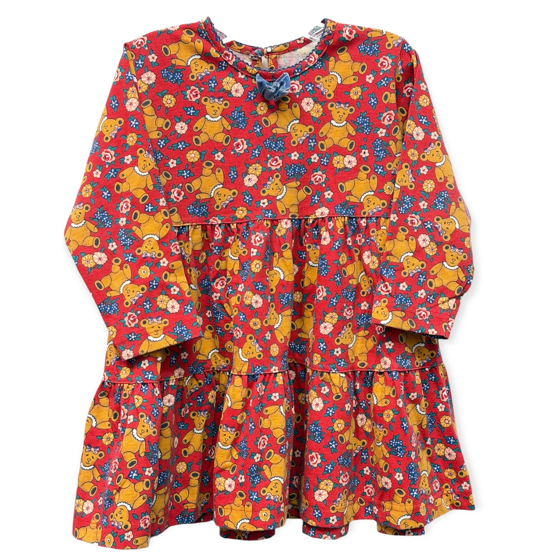 100% cotton knit twirl dress with teddy bears, velvet bow detail (Pre-owned, vintage condition)