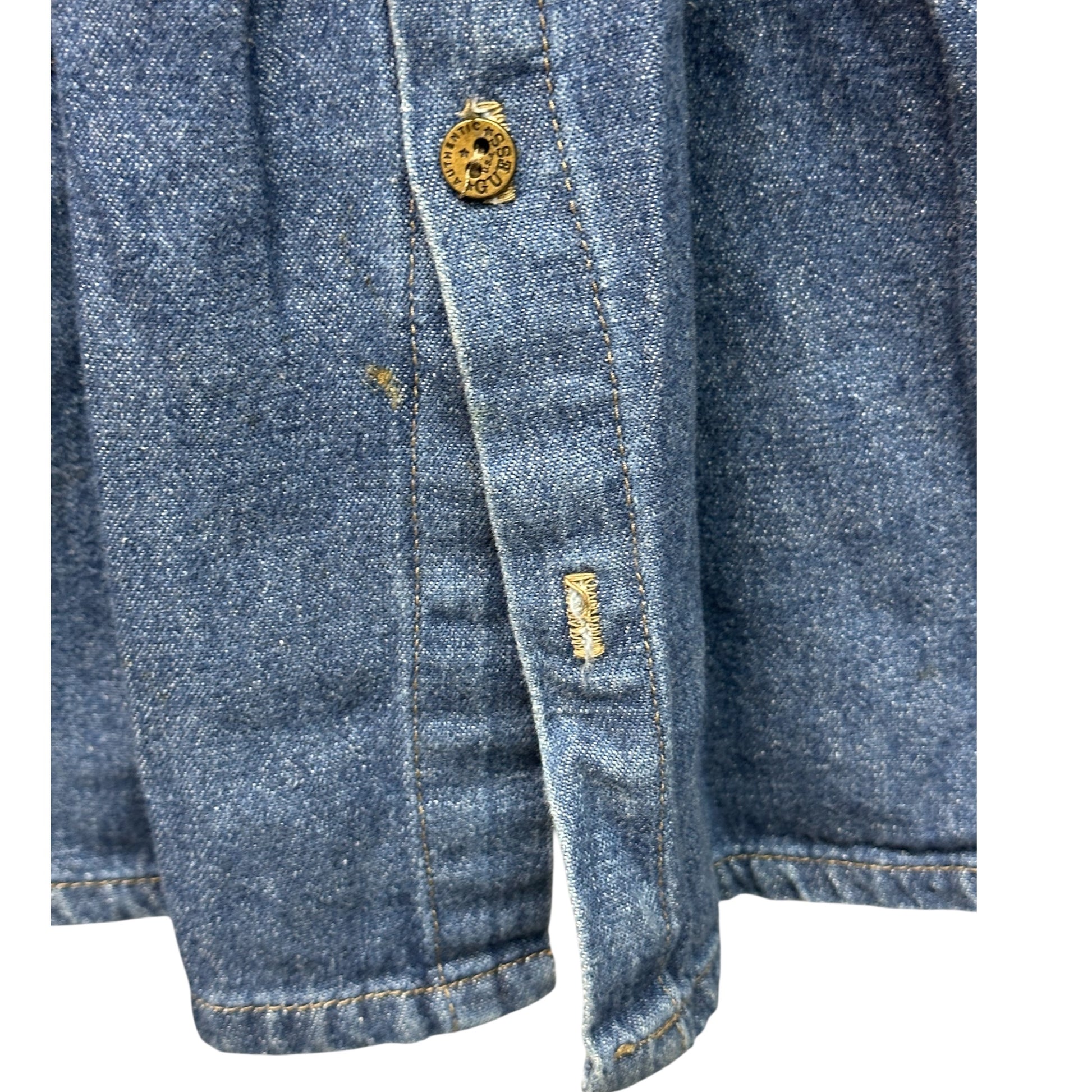 Denim dress with brass buttons, pockets, note: bottom button is missing (Pre-owned, vintage condition)