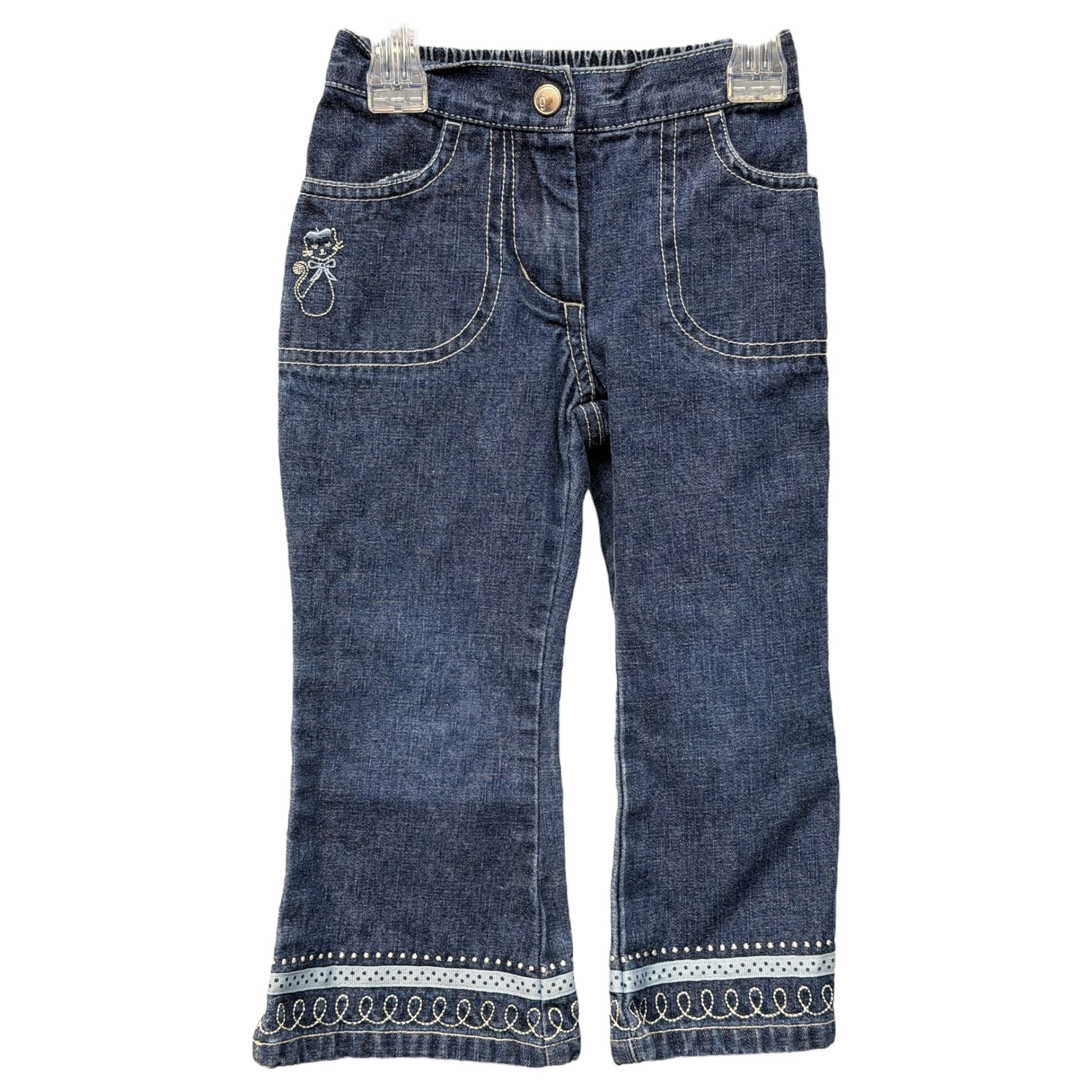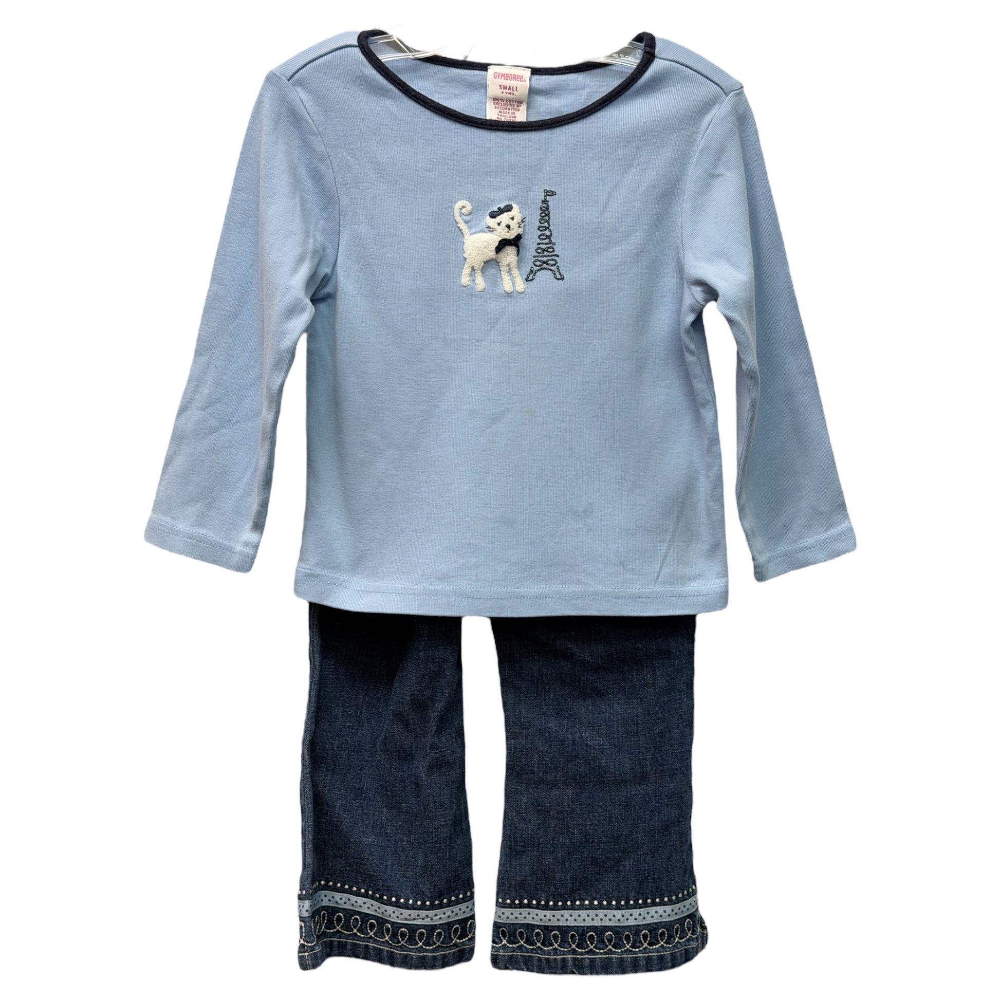 Parisian Kitty knit tee, matching flare embroidered jeans with elastic back, small spot on tee pictured 2002 (Pre-owned, vintage condition)