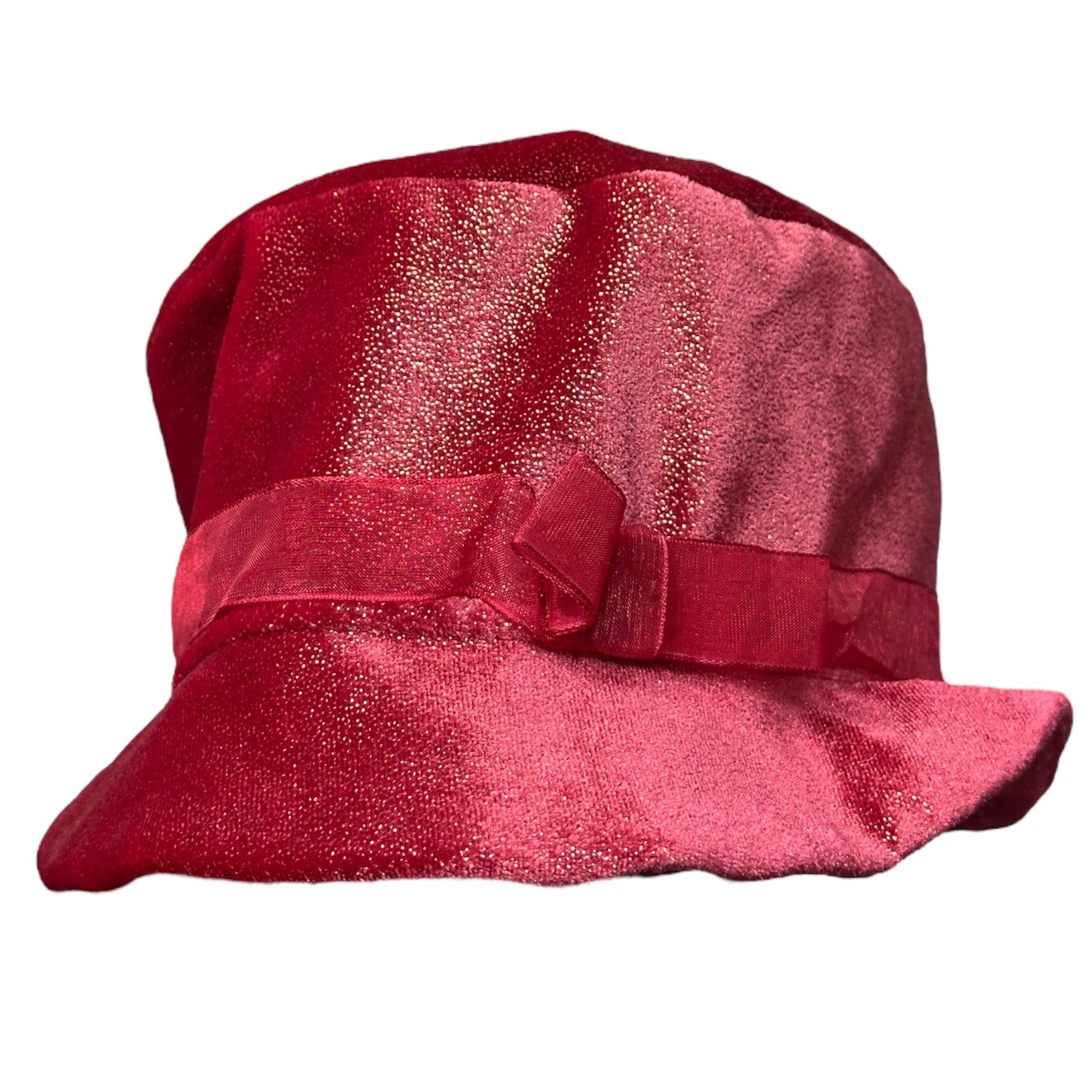 Red velour with gold thread, rosette detail, bucket hat (Pre-owned, vintage condition)